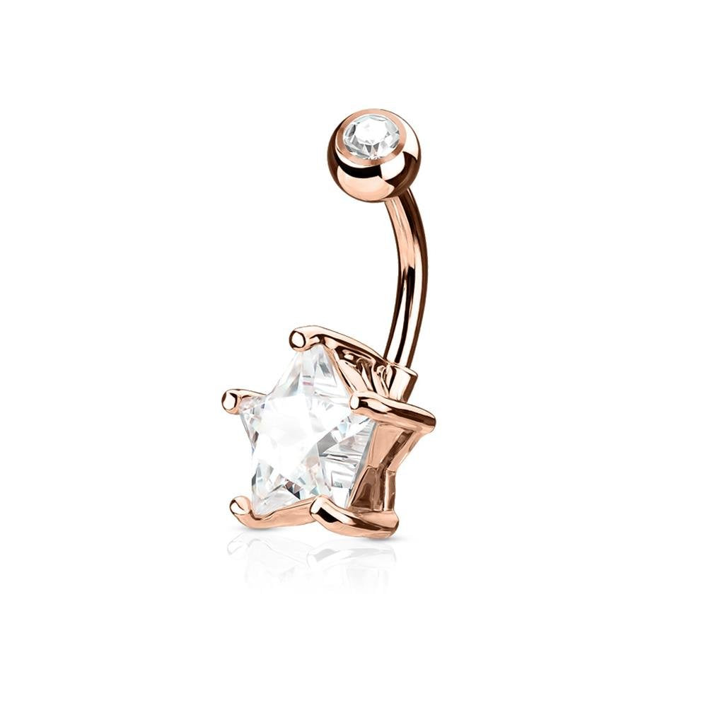- Double Gemmed Solitaire Star 316L Surgical Steel Navel Ring