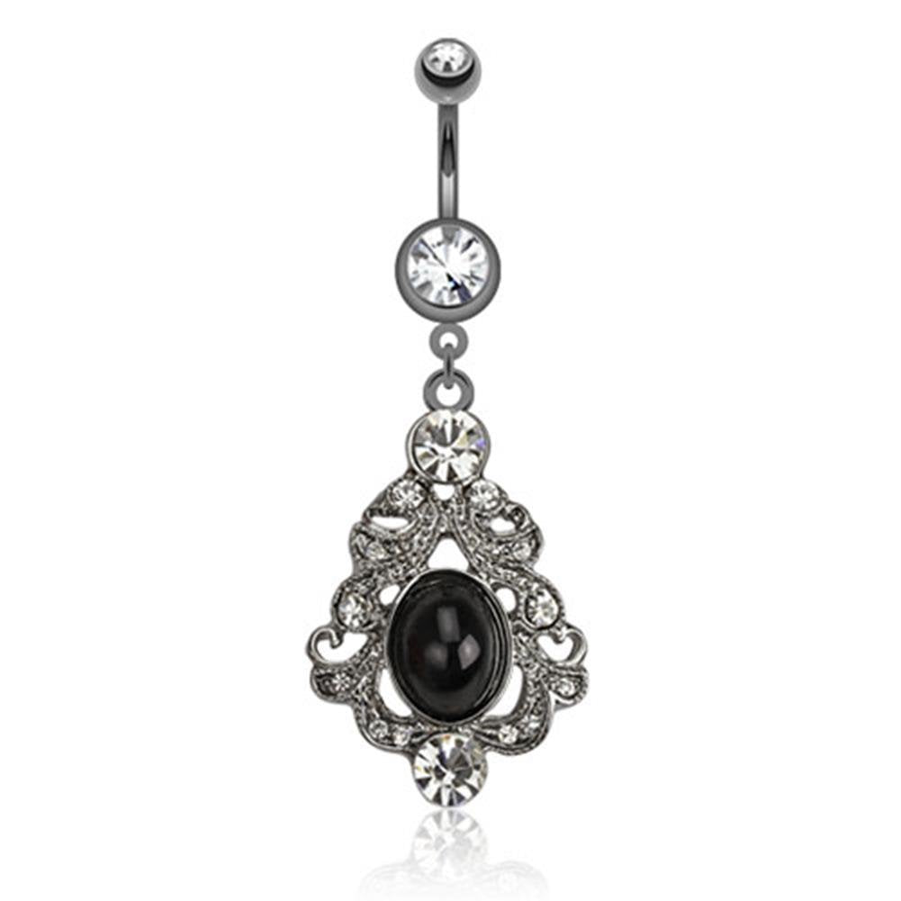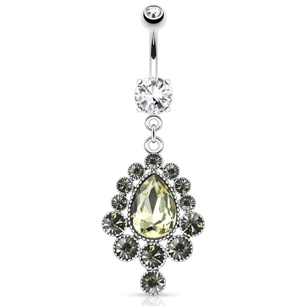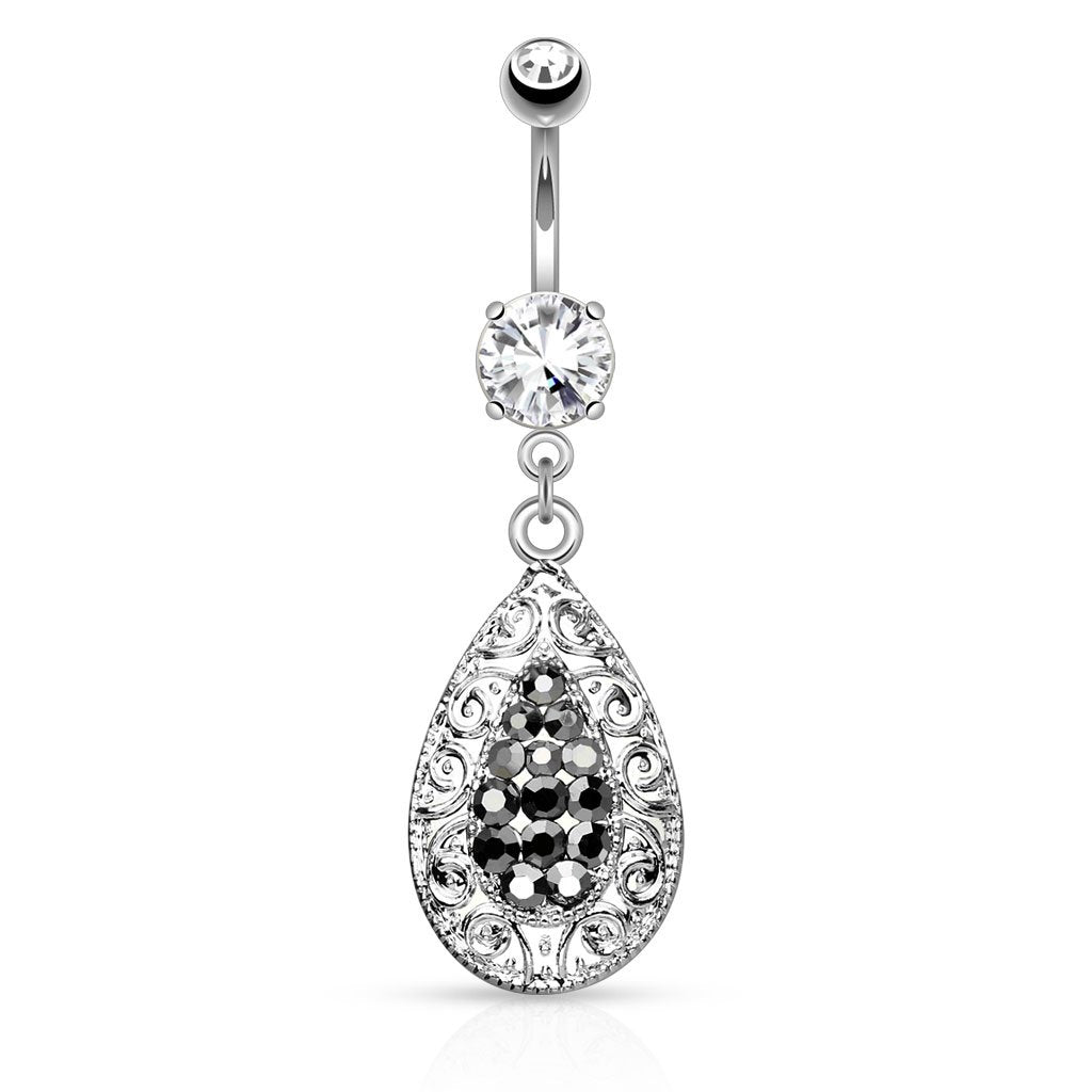 - Gem Paved Pear Drop with Black CZ Dangle Navel Ring