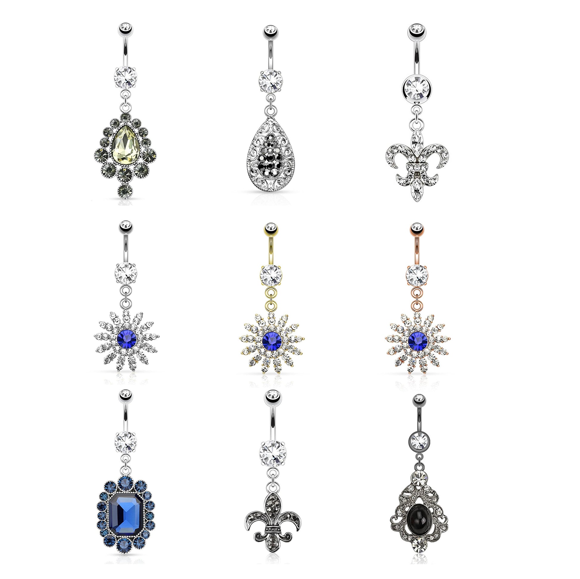 Bauchnabelpiercing 1,6mm 10mm Vintage Anhänger Nabelpiercing Edelstahl Chirurgenstahl Bananabell Zirkonia Silber Gold Roségold