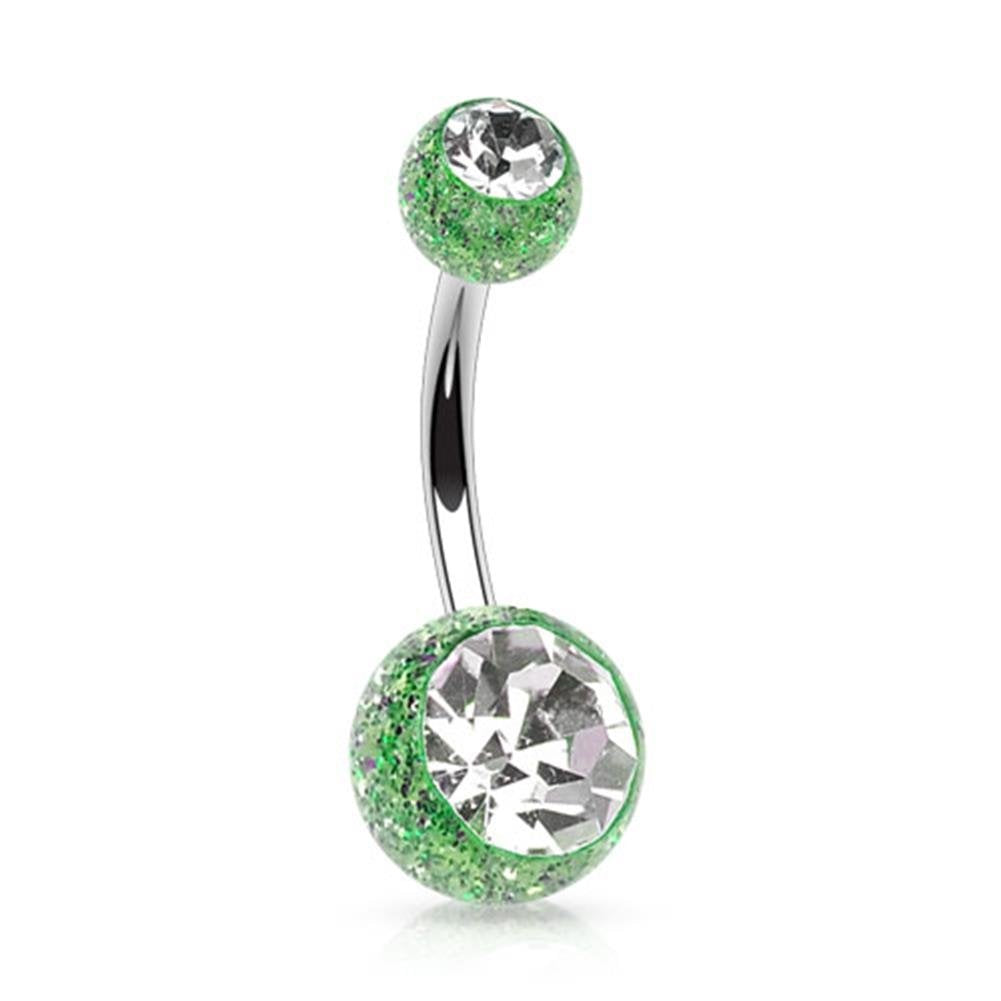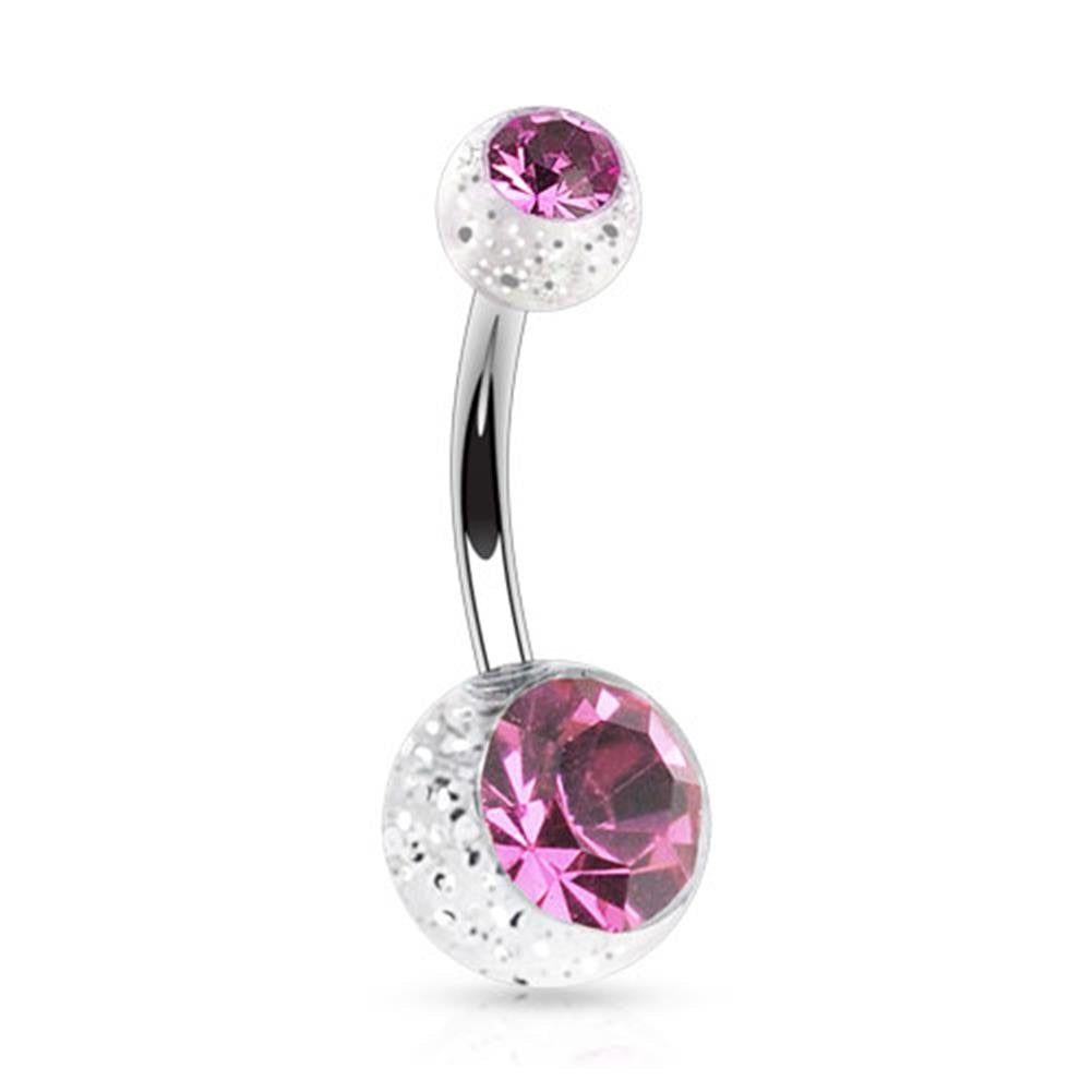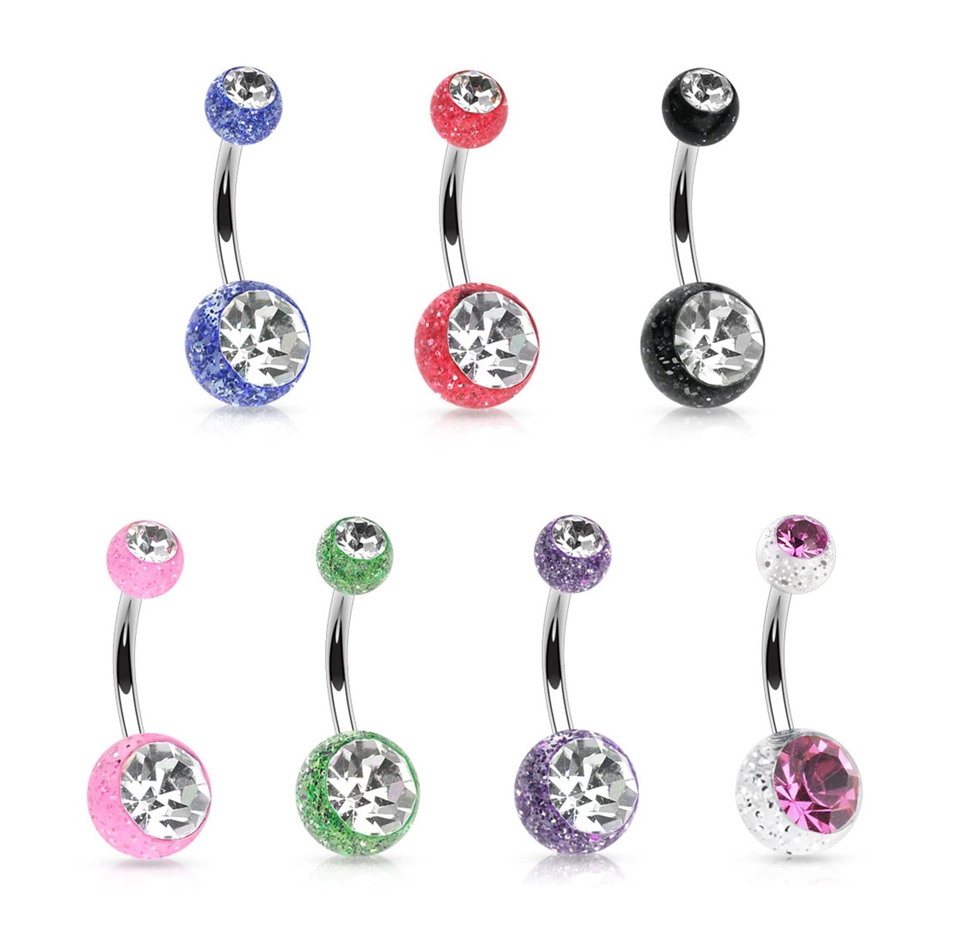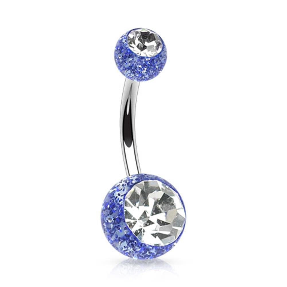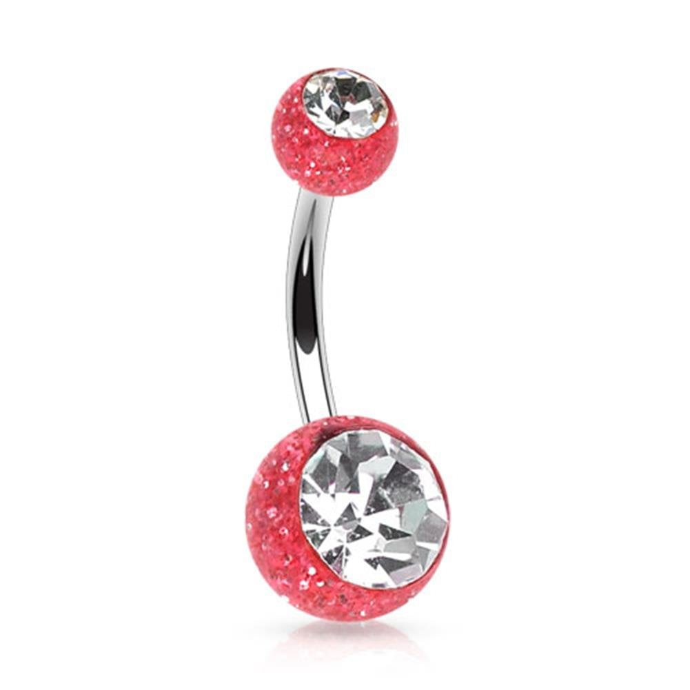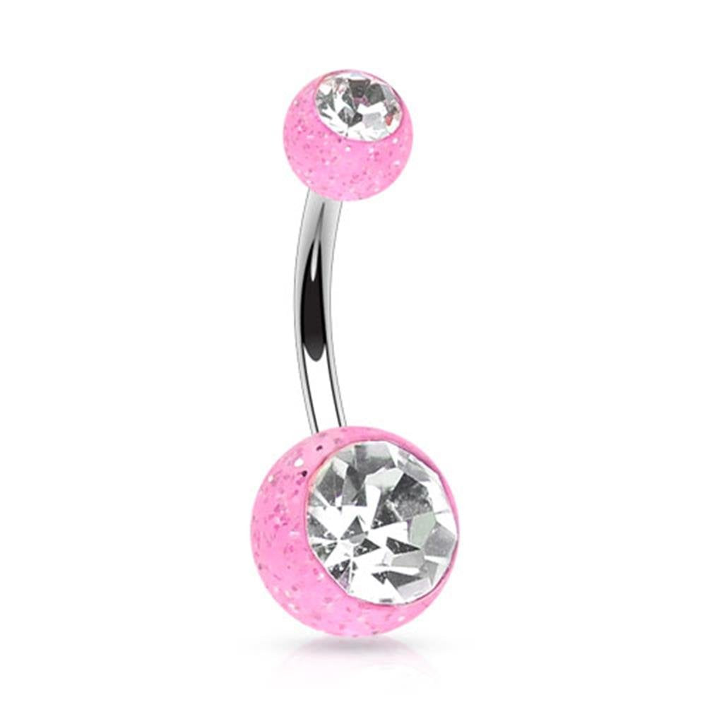 - 2 Ultra Glitter Gem Balls Shaft Navel Ring