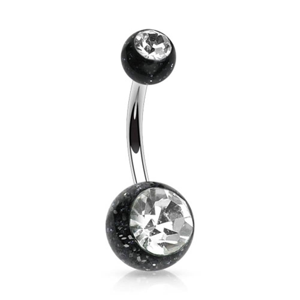 Bauchnabelpiercing 2 Glitzer-Kugeln 1,6mm 10mm Nabelpiercing Chirurgenstahl Bananabell Zirkonia Silber viele Farben