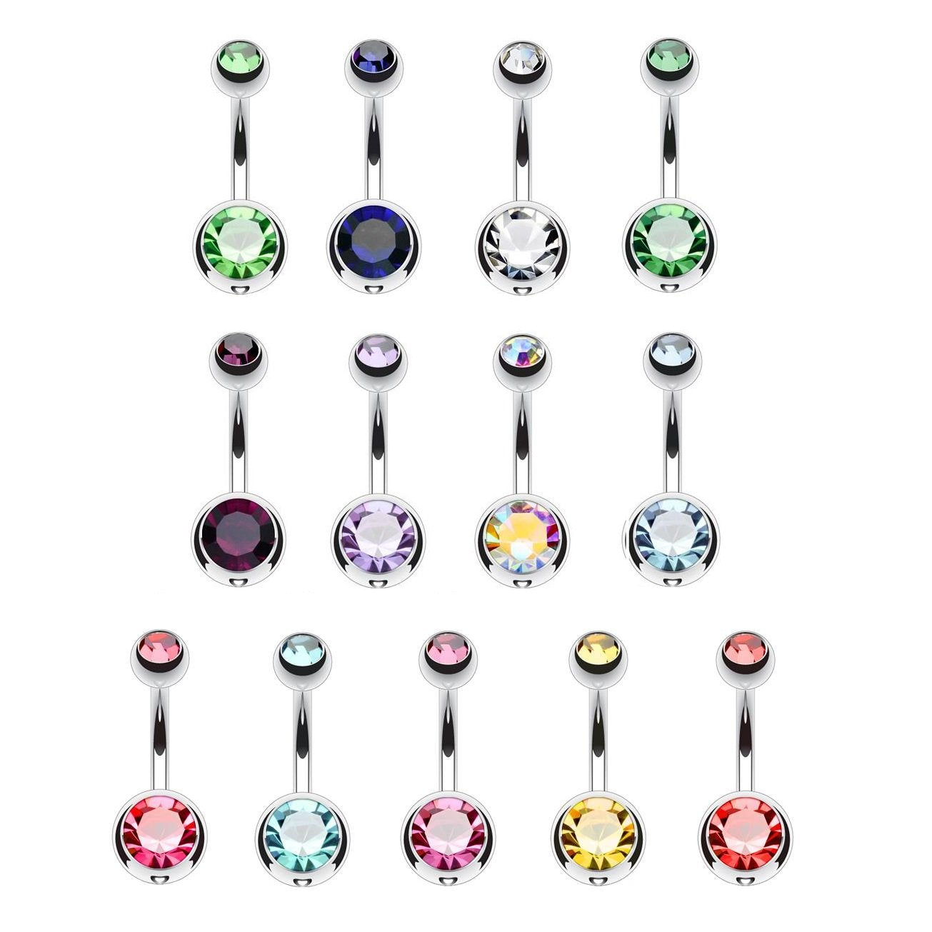 - Double Jeweled 14g 316L Surgical Stainless Steel Navel Rings