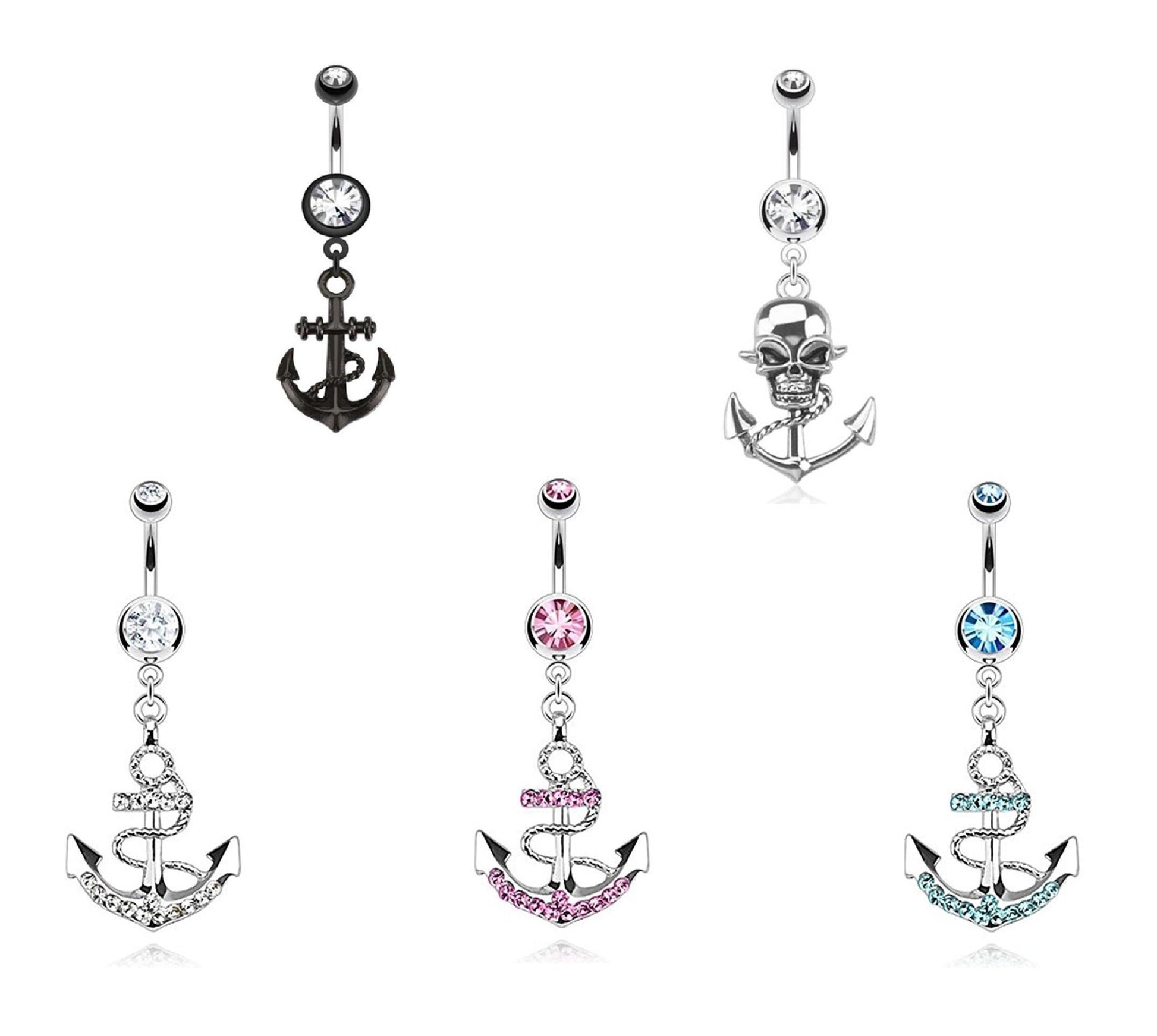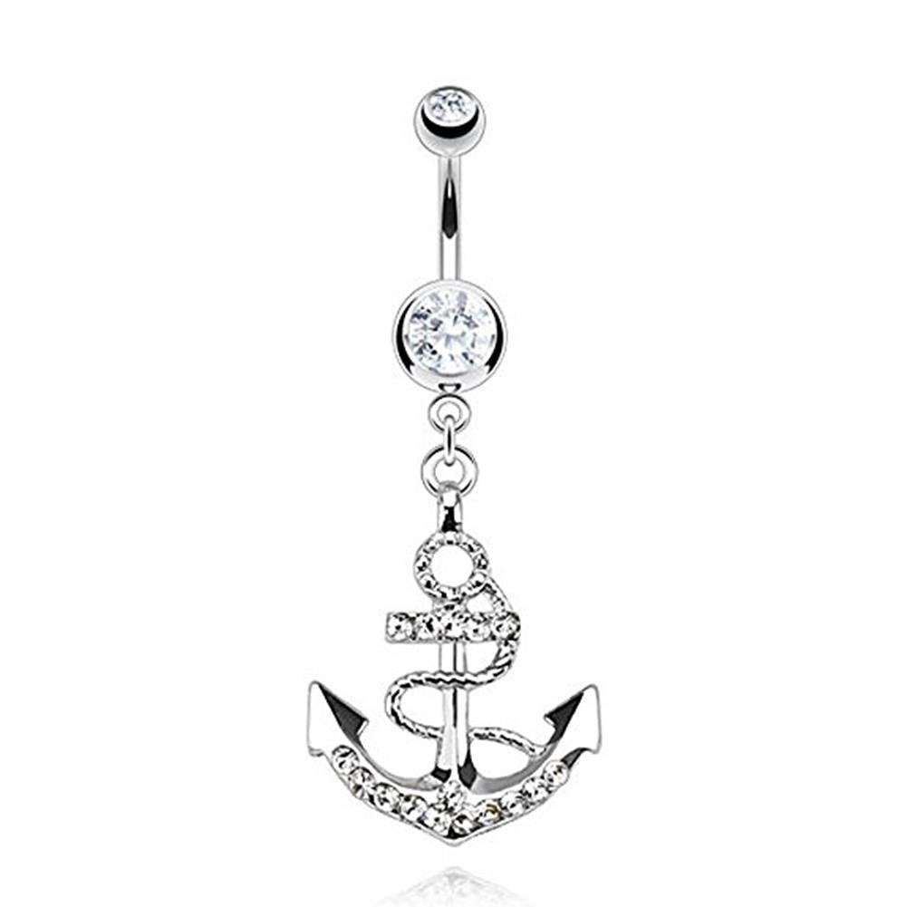 Bauchnabelpiercing Anker 1,6mm 10mm Anhänger Nabelpiercing Chirurgenstahl Bananabell Zirkonia Silber Clear Blau Pink Schwarz
