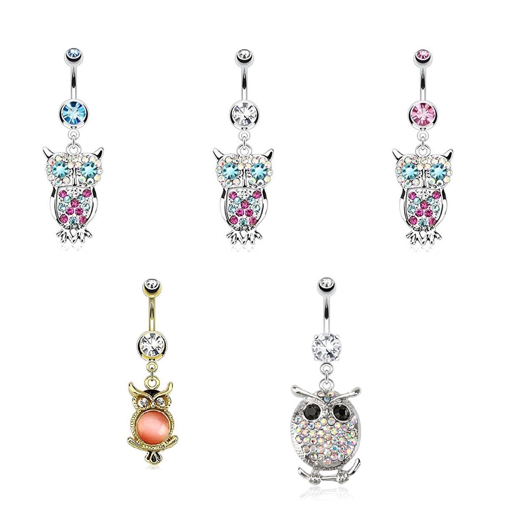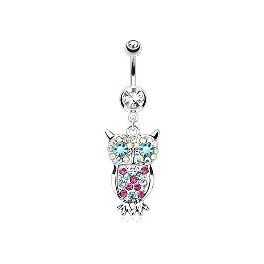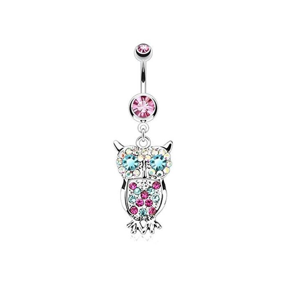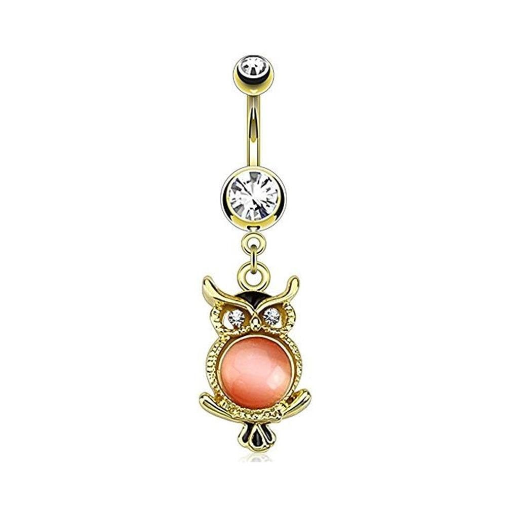 Bauchnabelpiercing Eule Anhänger 1,6mm 10mm Nabelpiercing Chirurgenstahl Bananabell Zirkonia 14 Karat Gold Silber Clear Pink Aqua