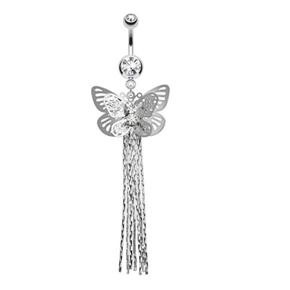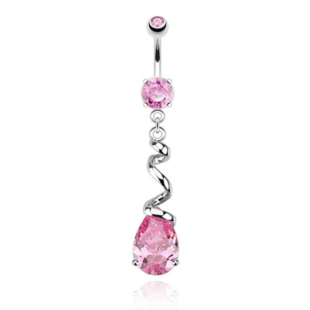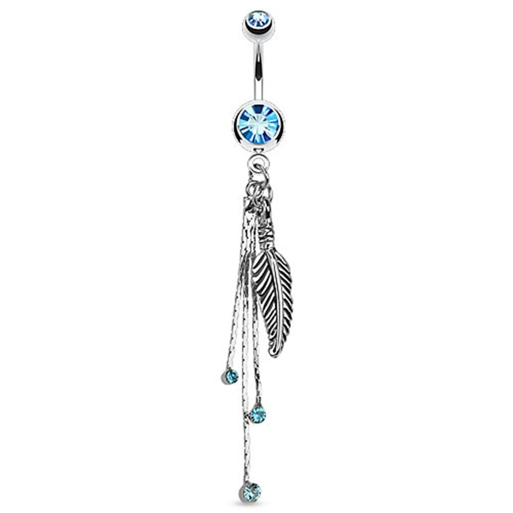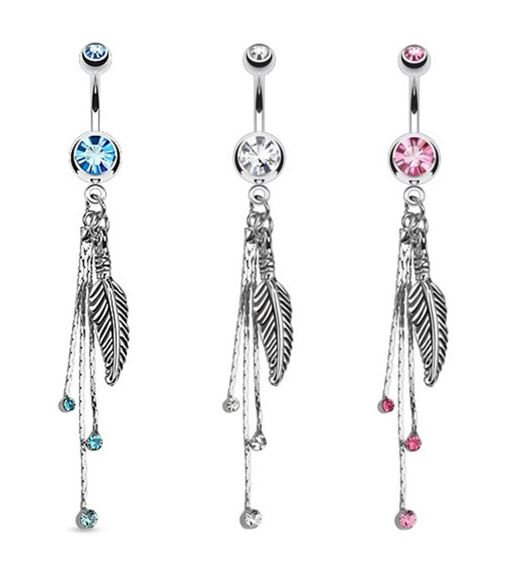 Bauchnabelpiercing Feder Anhänger 1,6mm 10mm Nabelpiercing Edelstahl Chirurgenstahl Bananabell Zirkonia Silber Pink Aqua Clear