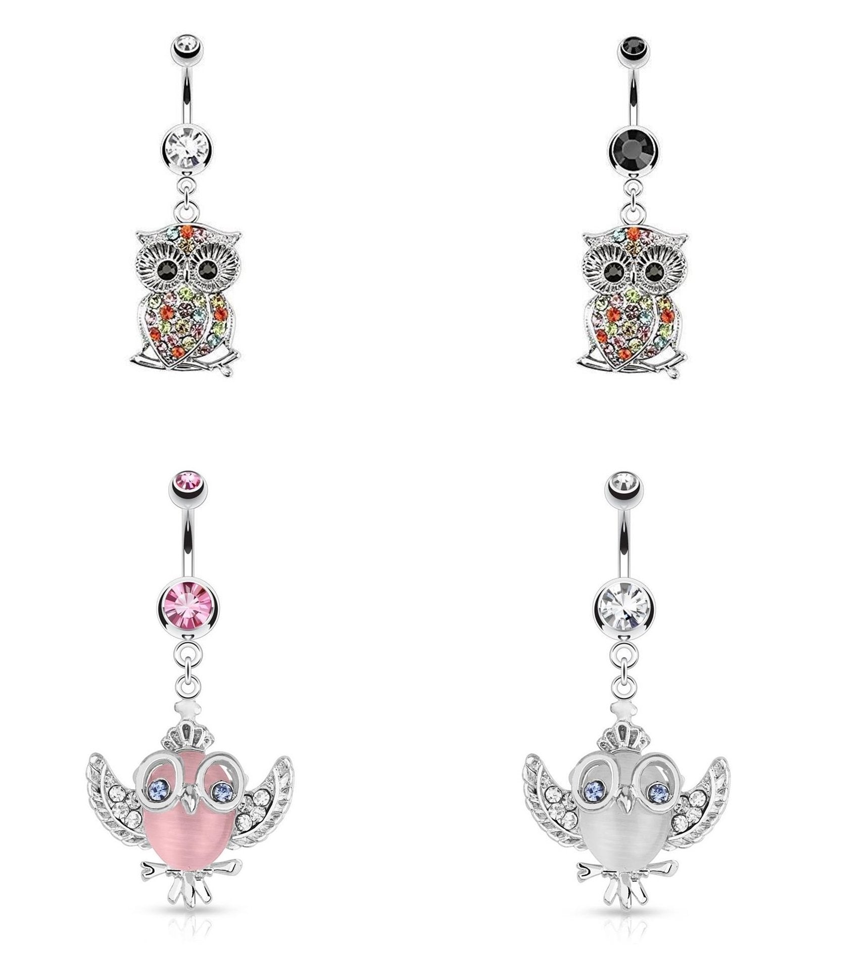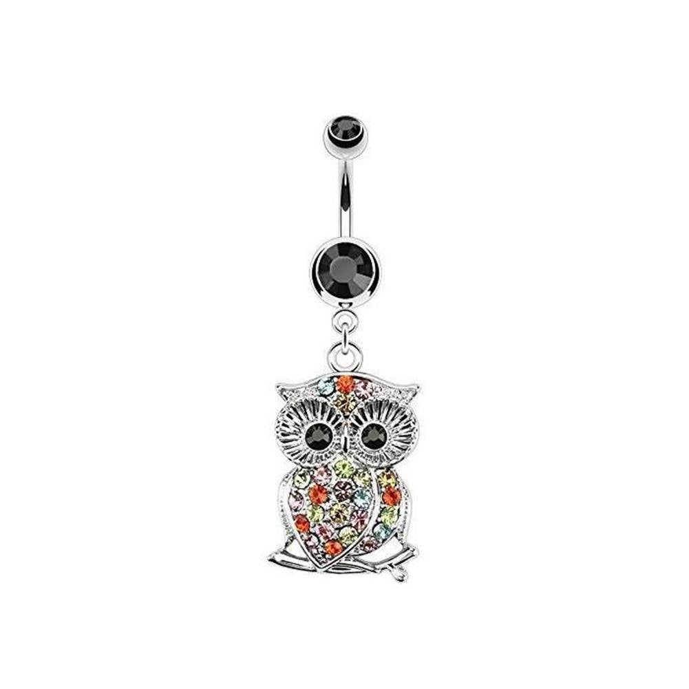 Bauchnabelpiercing Fliegende Eule Anhänger 1,6mm 10mm Nabelpiercing Chirurgenstahl Bananabell Zirkonia Silber Clear Pink Schwarz