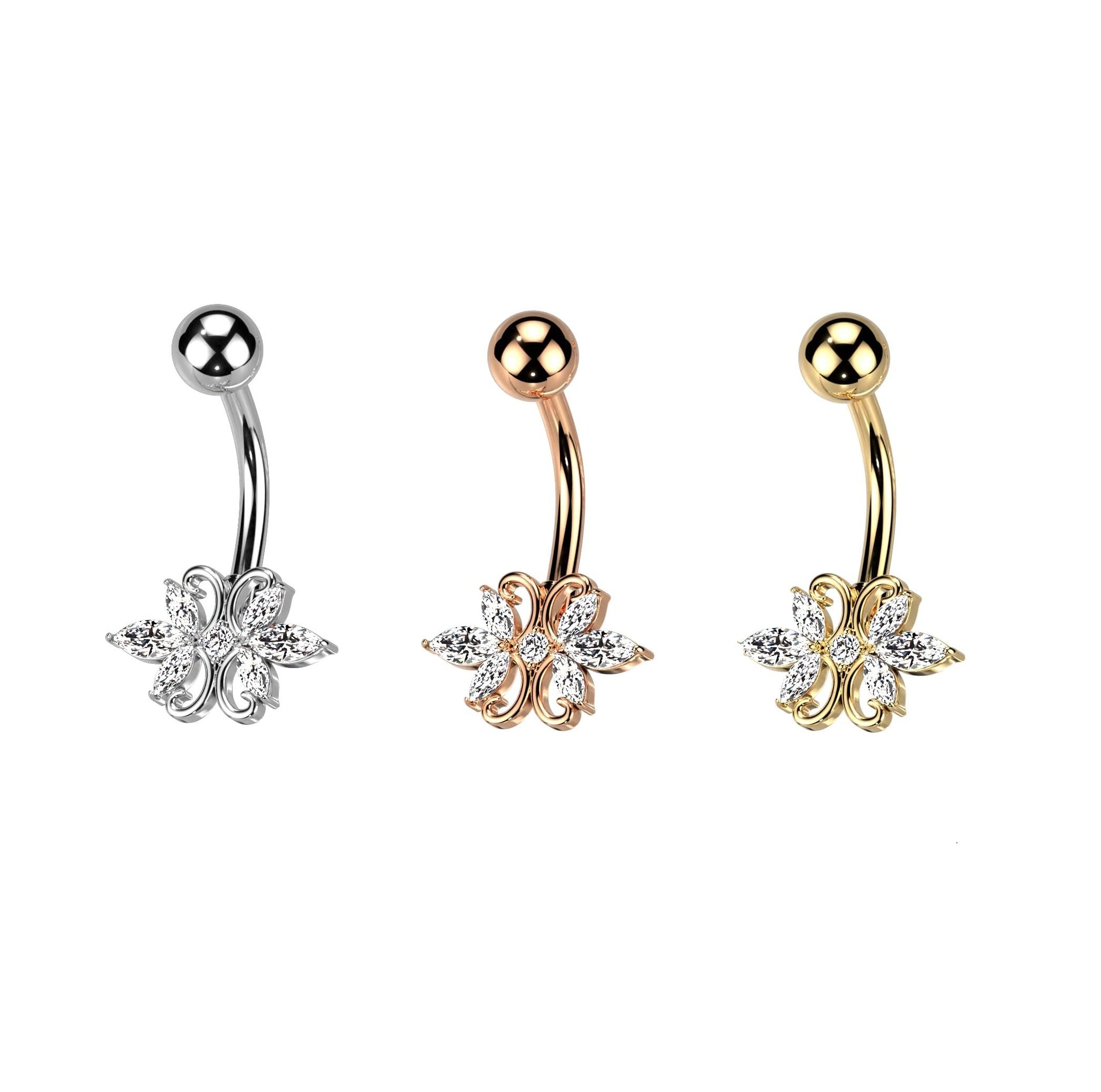 Bauchnabelpiercing Florales Design Marquise Zirkonia Clear Nabelpiercing Chirurgenstahl Bananabell Stab-länge 10mm
