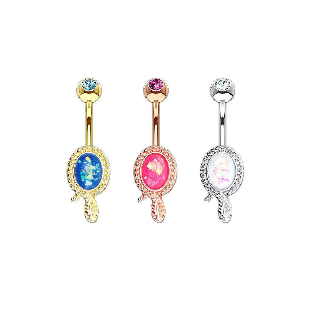 - Snake Wrapped Around Opal Glitter Center 316L Surgical Steel Belly Button Navel Rings