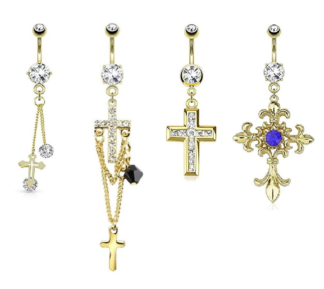 - Cross Dangle 14kt Gold Plated Navel Ring