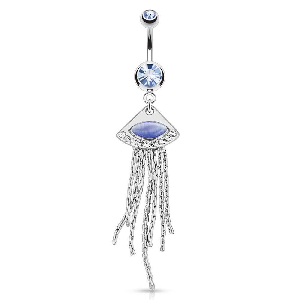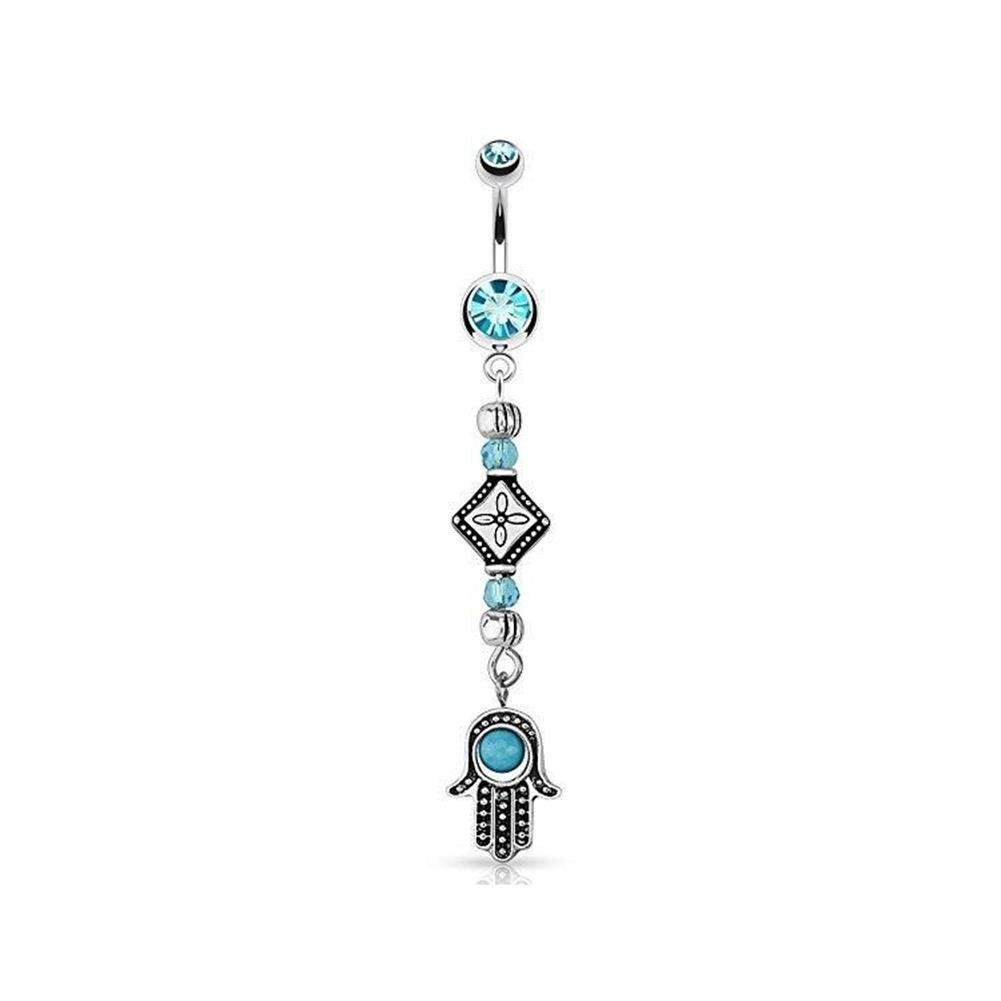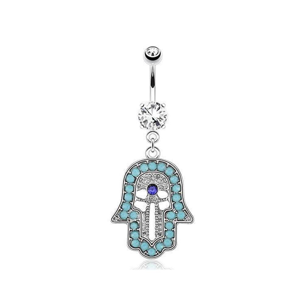 - Hamsa with Paved Turquoise and Blue Center CZ Dangle Navel Ring
