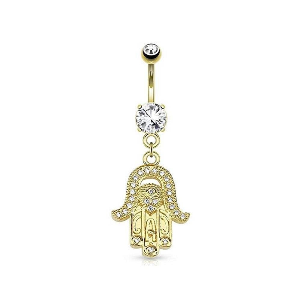 Bauchnabelpiercing Hamsa-Hand Anhänger 1,6mm 10mm Nabelpiercing Chirurgenstahl Bananabell Zirkonia 14 Karat Gold Silber Clear Aqua