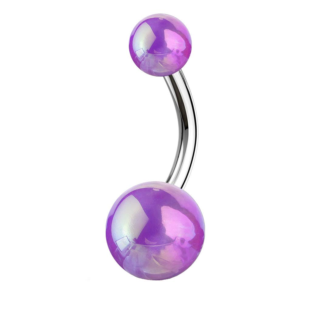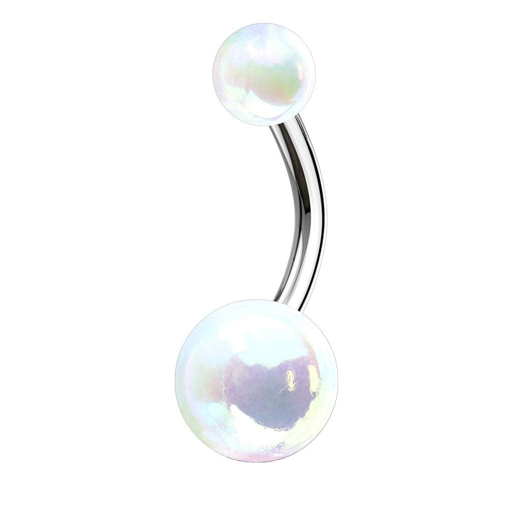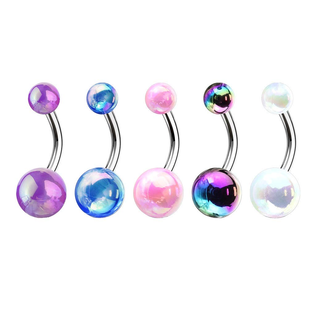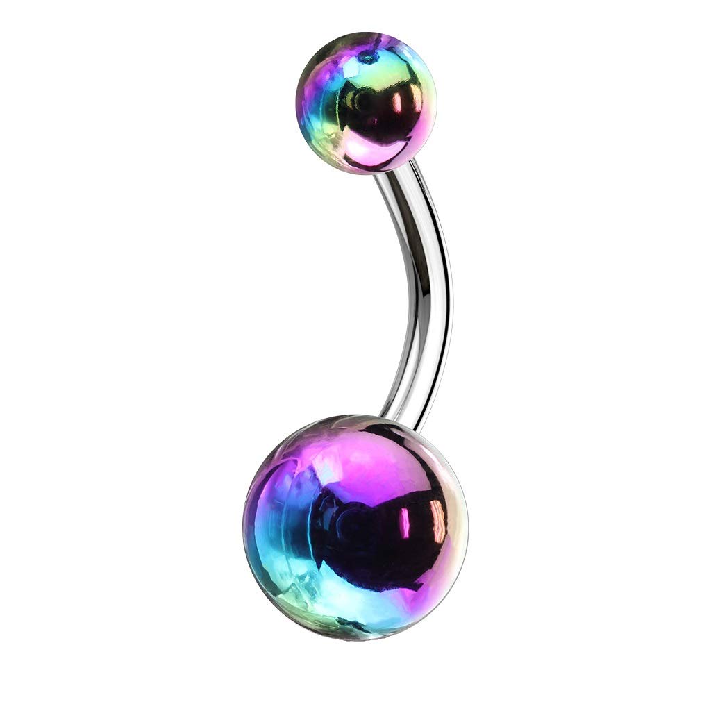 - Metallic AB Coating Balls Over 316L Surgical Steel Belly Button Navel Rings