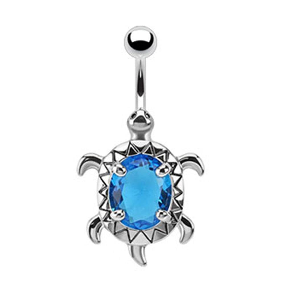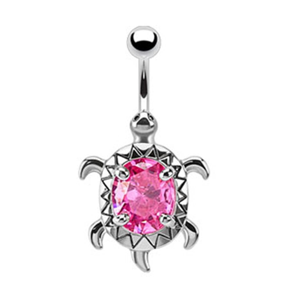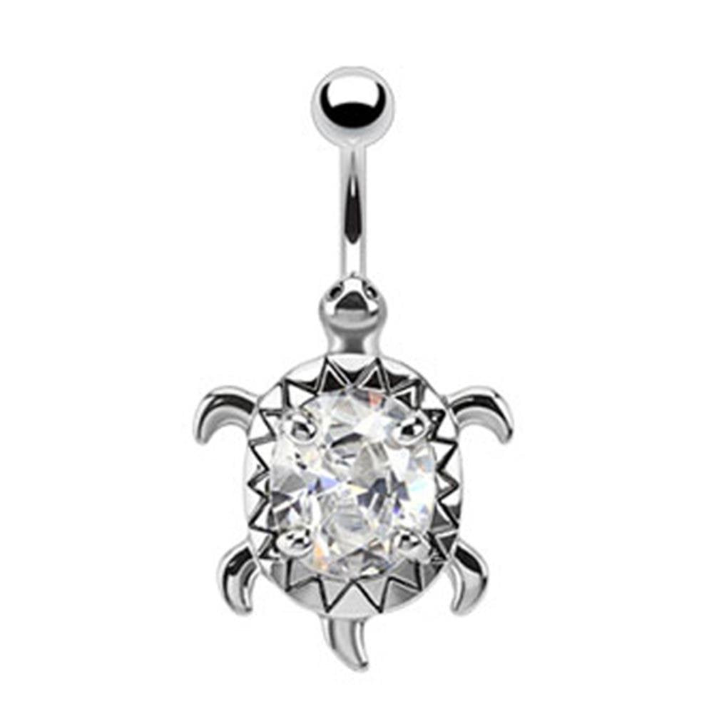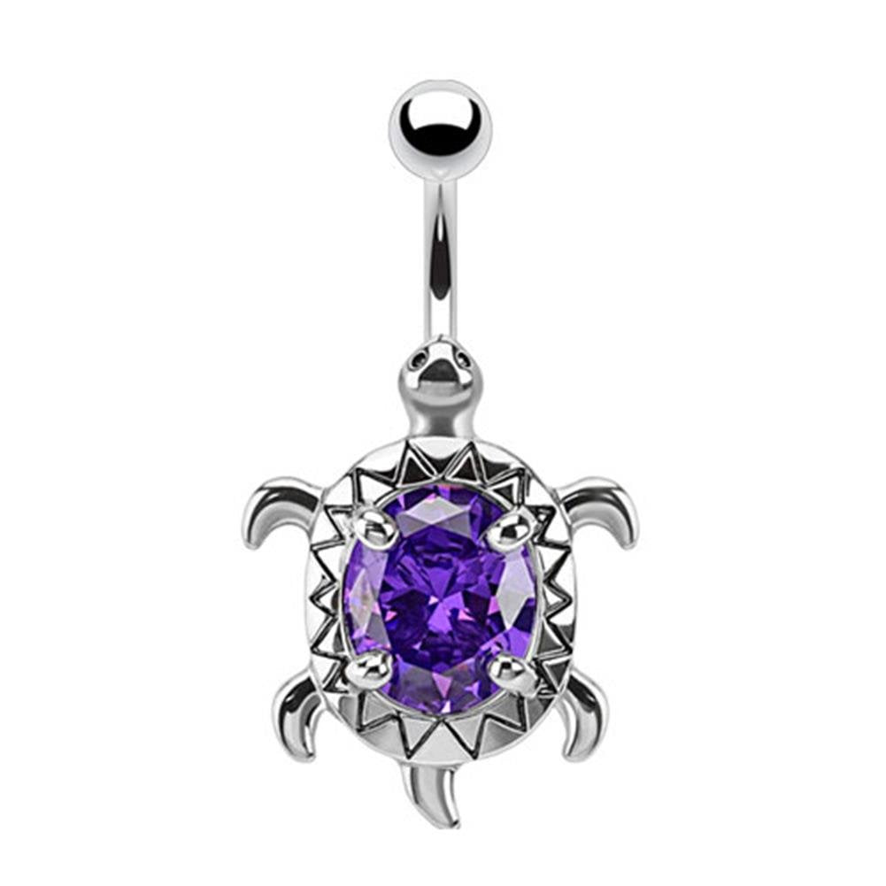 Bauchnabelpiercing SCHILDKRÖTE 1,6mm 10mm Nabelpiercing Edelstahl Chirurgenstahl Bananabell Zirkonia Silber Aqua Pink Clear Lila