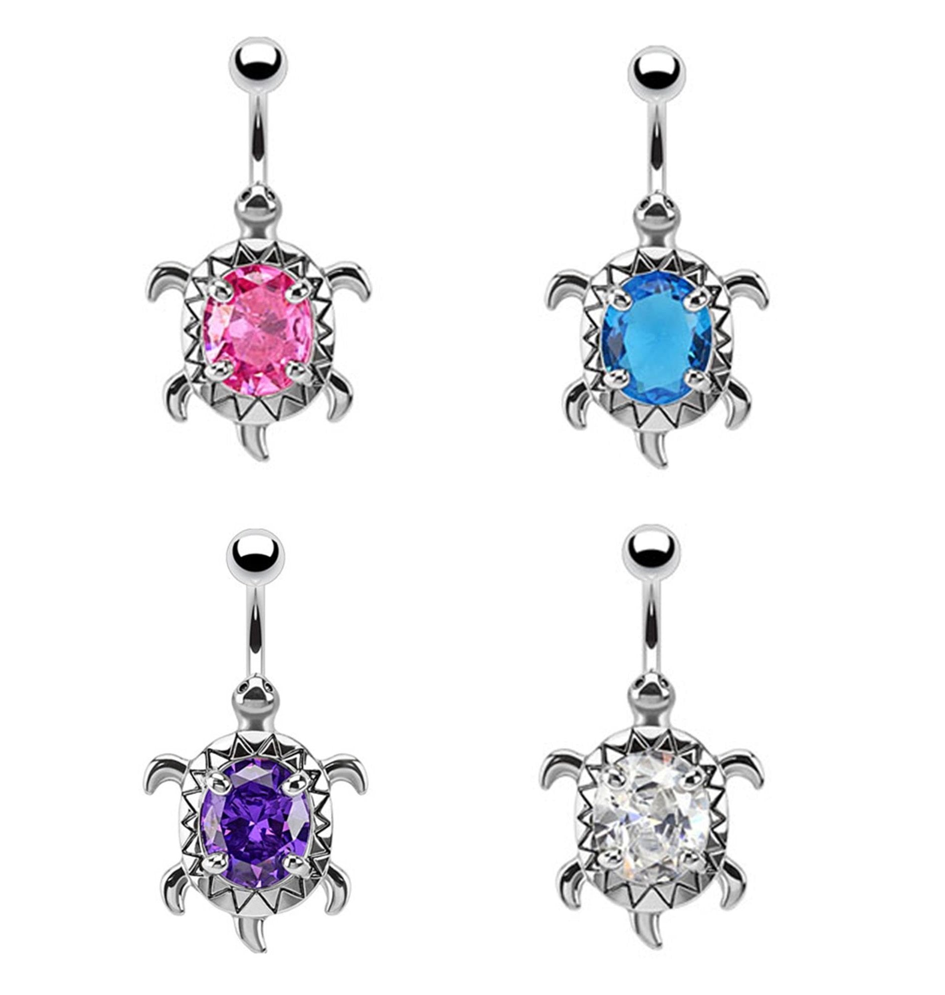 - Turtle with a Large Oval CZ Center Navel Ring
