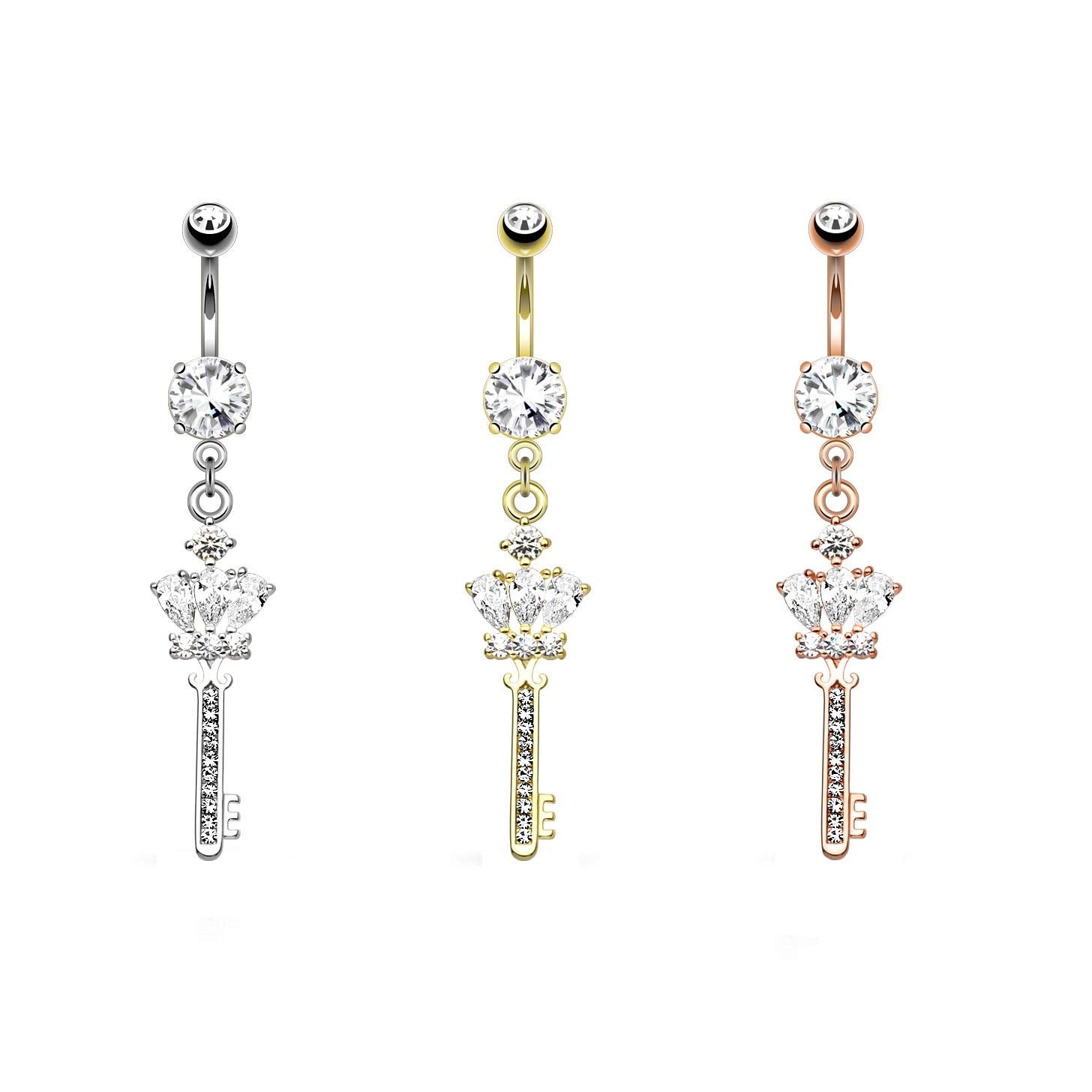 Bauchnabelpiercing Schlüssel Krone Anhänger Nabelpiercing Chirurgenstahl Bananabell Gold Silber Roségold Stab 1,6/10mm