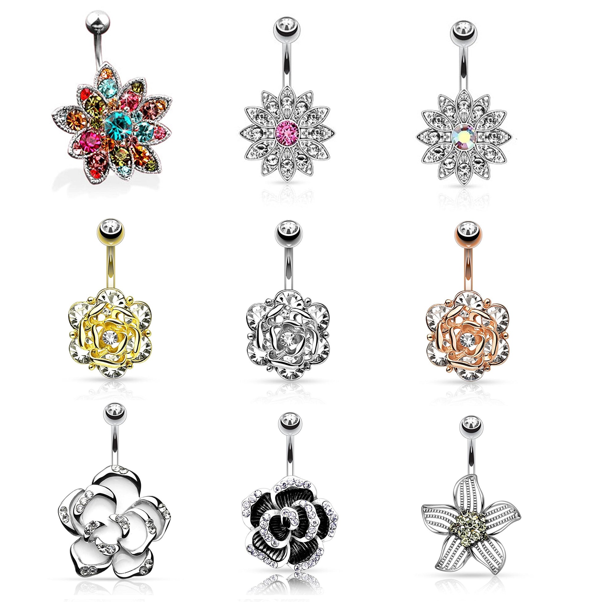 Bauchnabelpiercing Set 1,6mm 10mm Blume Nabelpiercing Edelstahl Chirurgenstahl Bananabell Zirkonia Kristalle Silber Gold Roségold