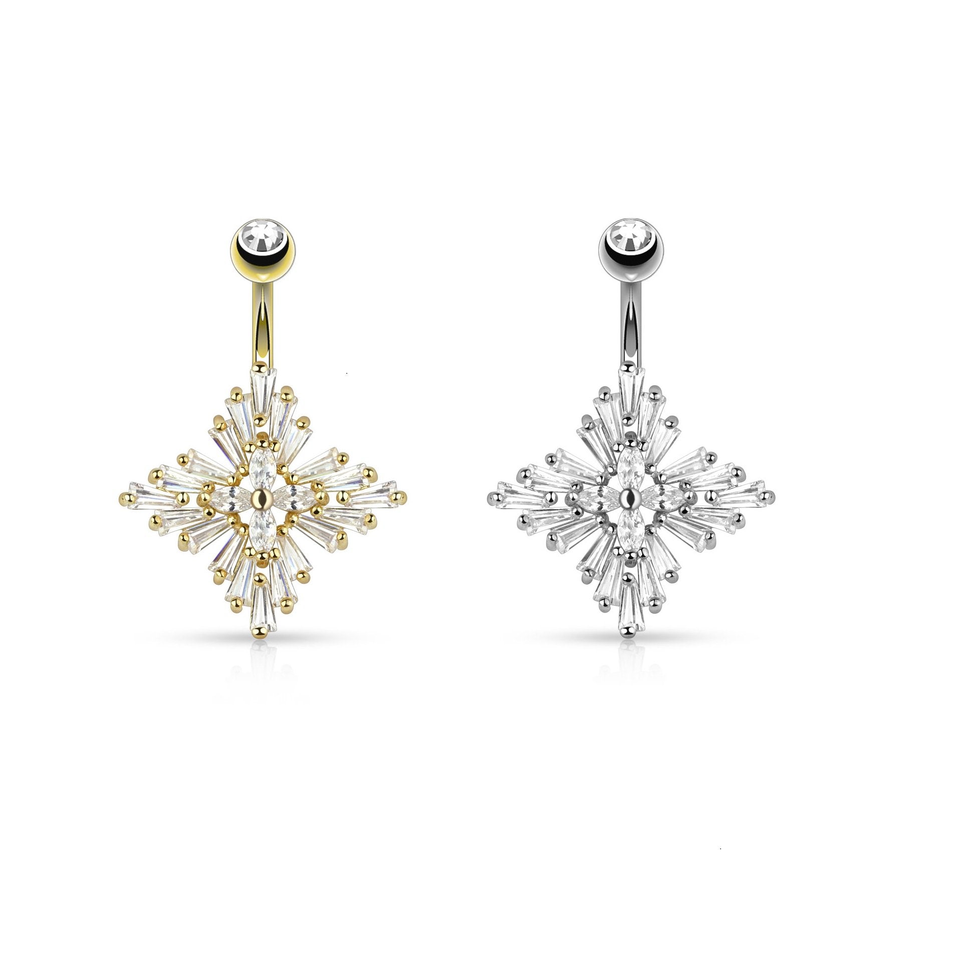 Bauchnabelpiercing Set 1,6mm 10mm Diamant-Kreuz 21,7 x 22,3mm Nabelpiercing Chirurgenstahl Bananabell Zirkonia Silber Gold Clear