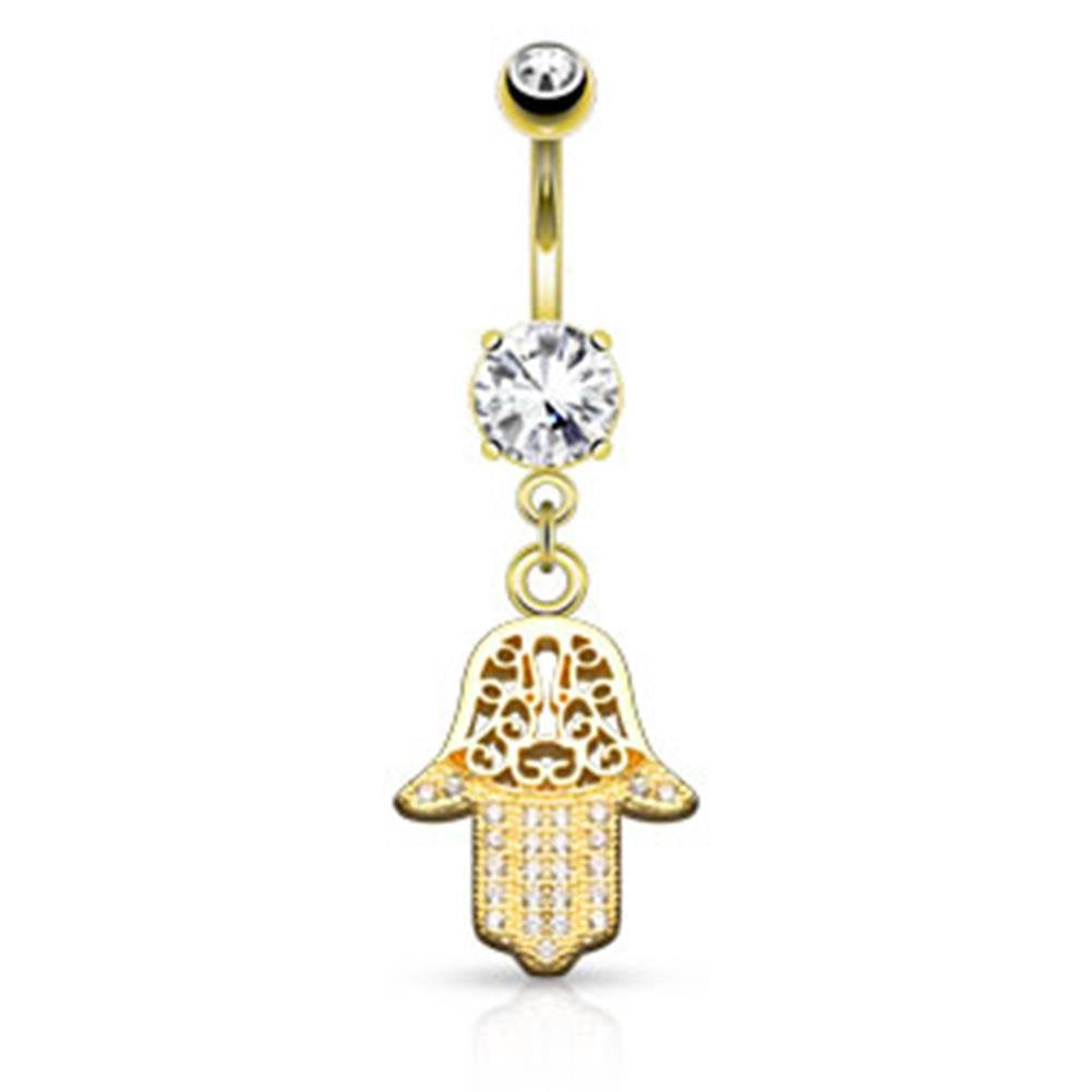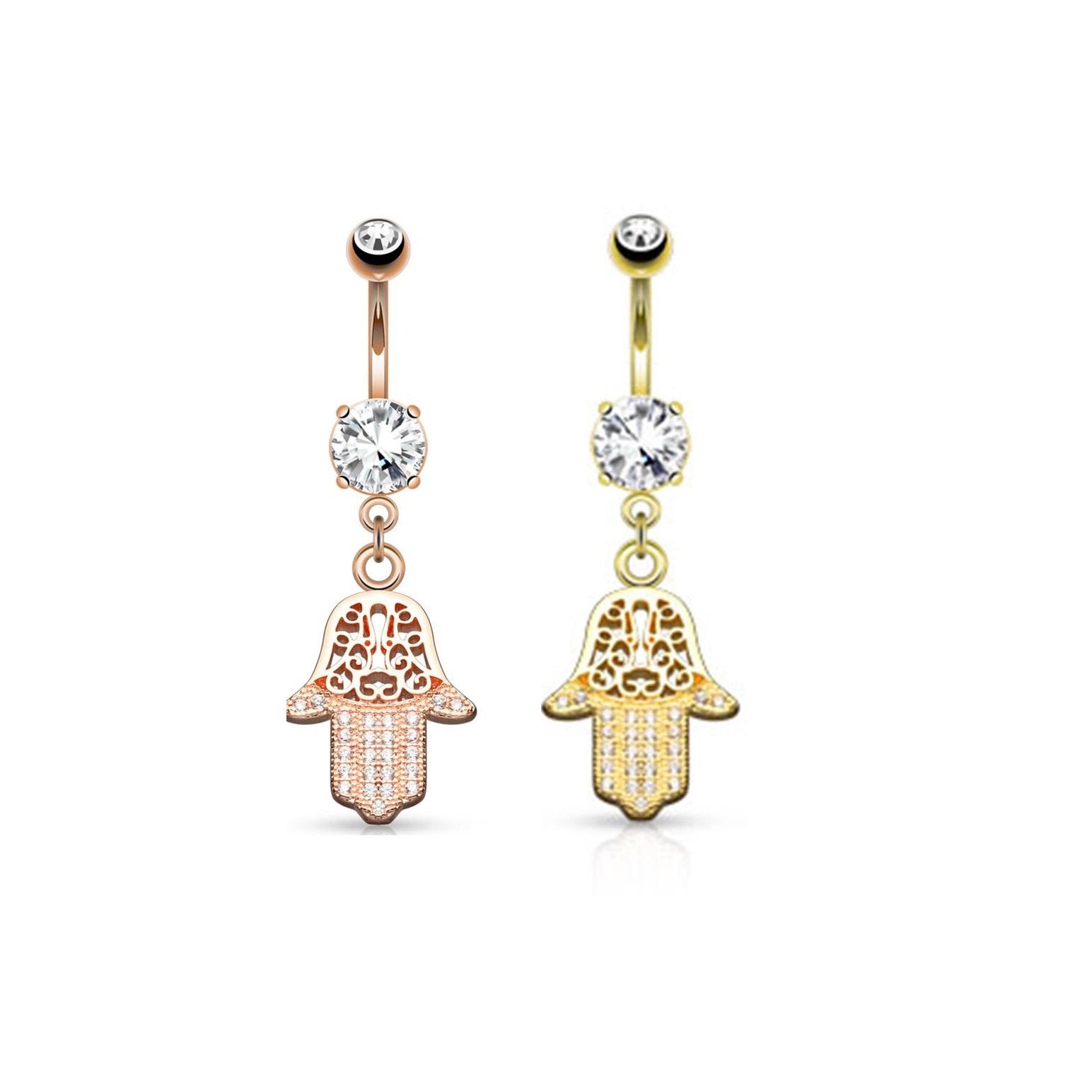 Bauchnabelpiercing Set 1,6mm 10mm Hamsa 16,2 x 13,1mm Nabelpiercing Chirurgenstahl Bananabell Zirkonia Farbe Weiß in Gold Roségold
