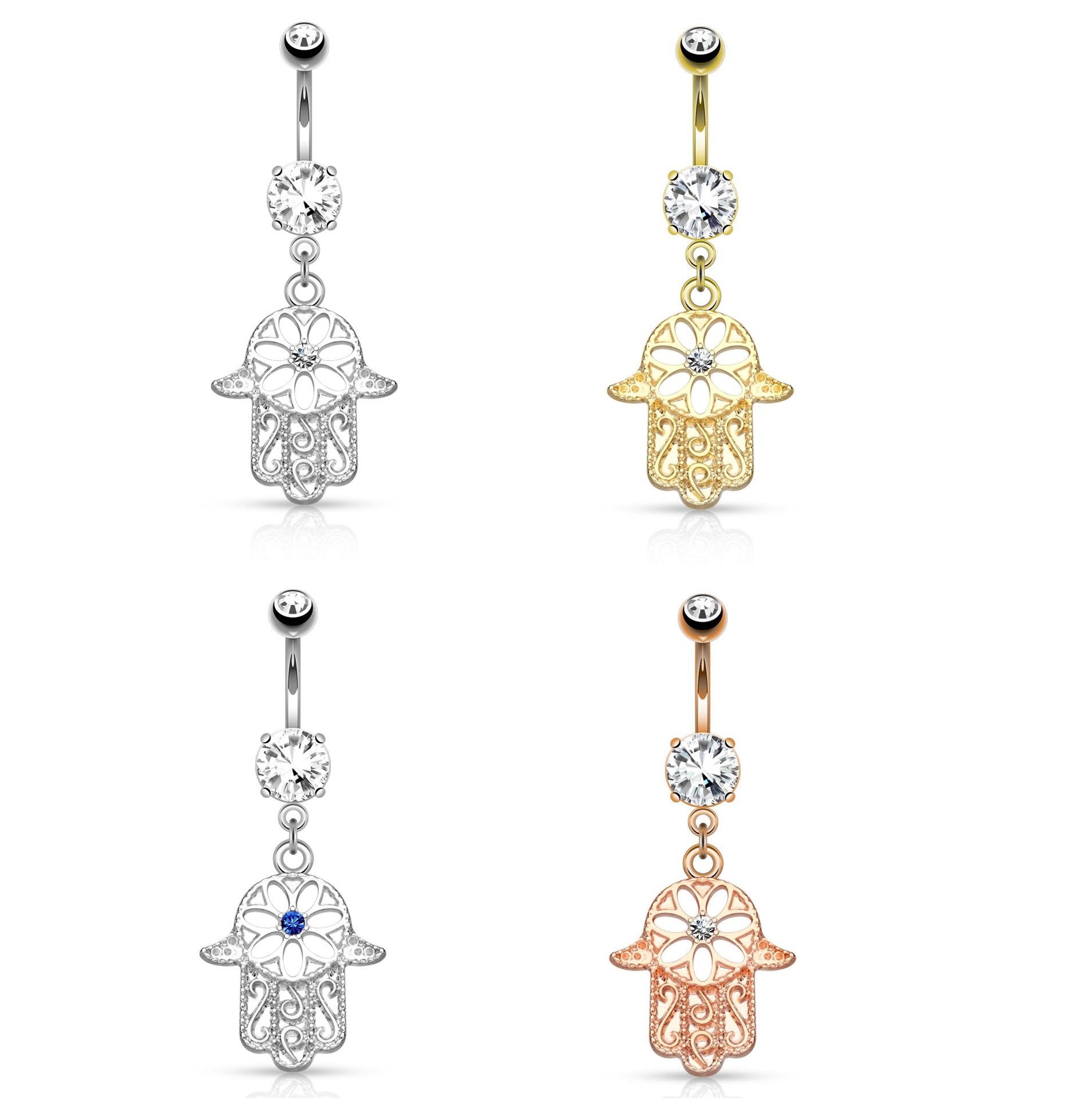 Bauchnabelpiercing Set 1,6mm 10mm Hamsa 17 x 14,7mm Nabelpiercing Chirurgenstahl Bananabell Zirkonia Farben Gold Silber Roségold