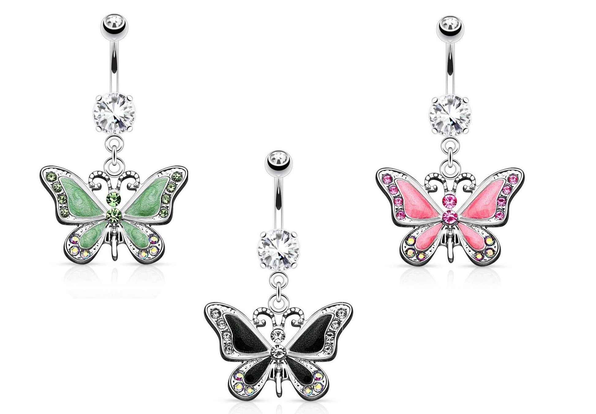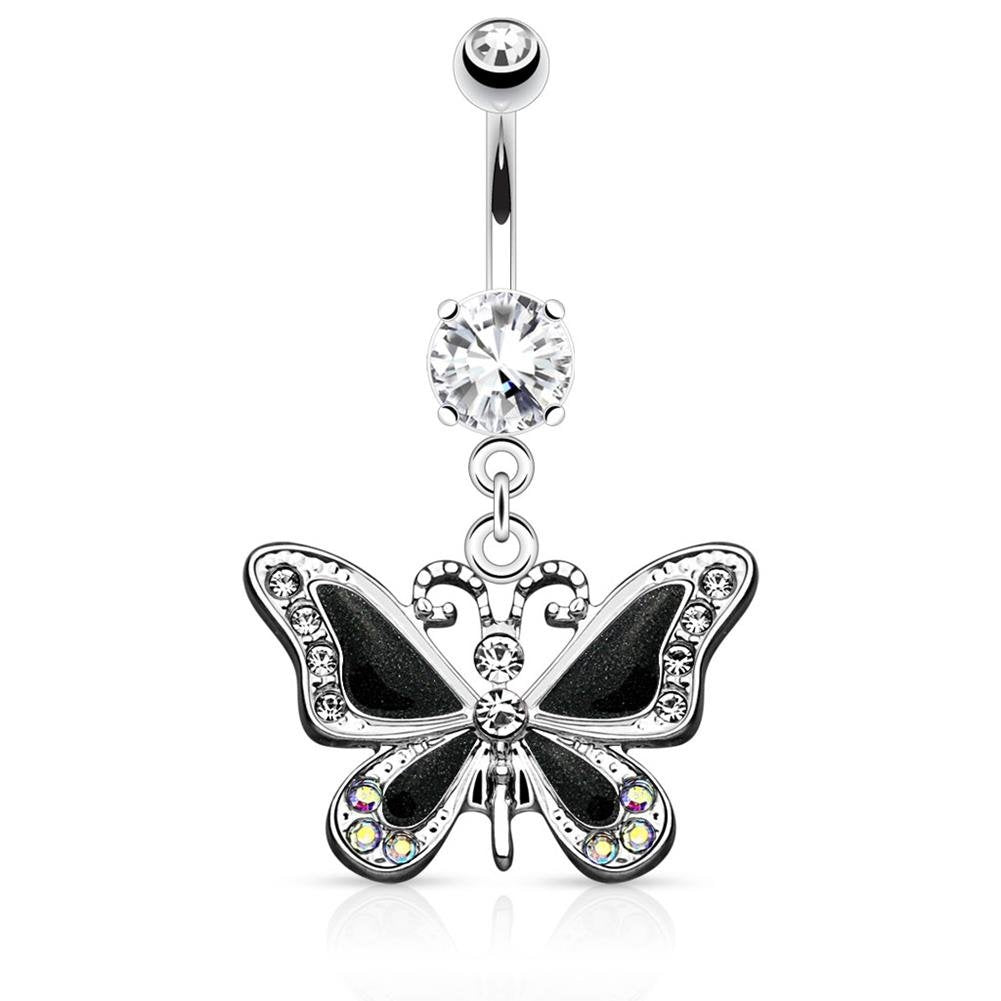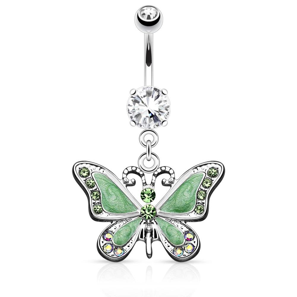 - Butterfly Dangle with Gems 316L Surgical Steel Navel Ring