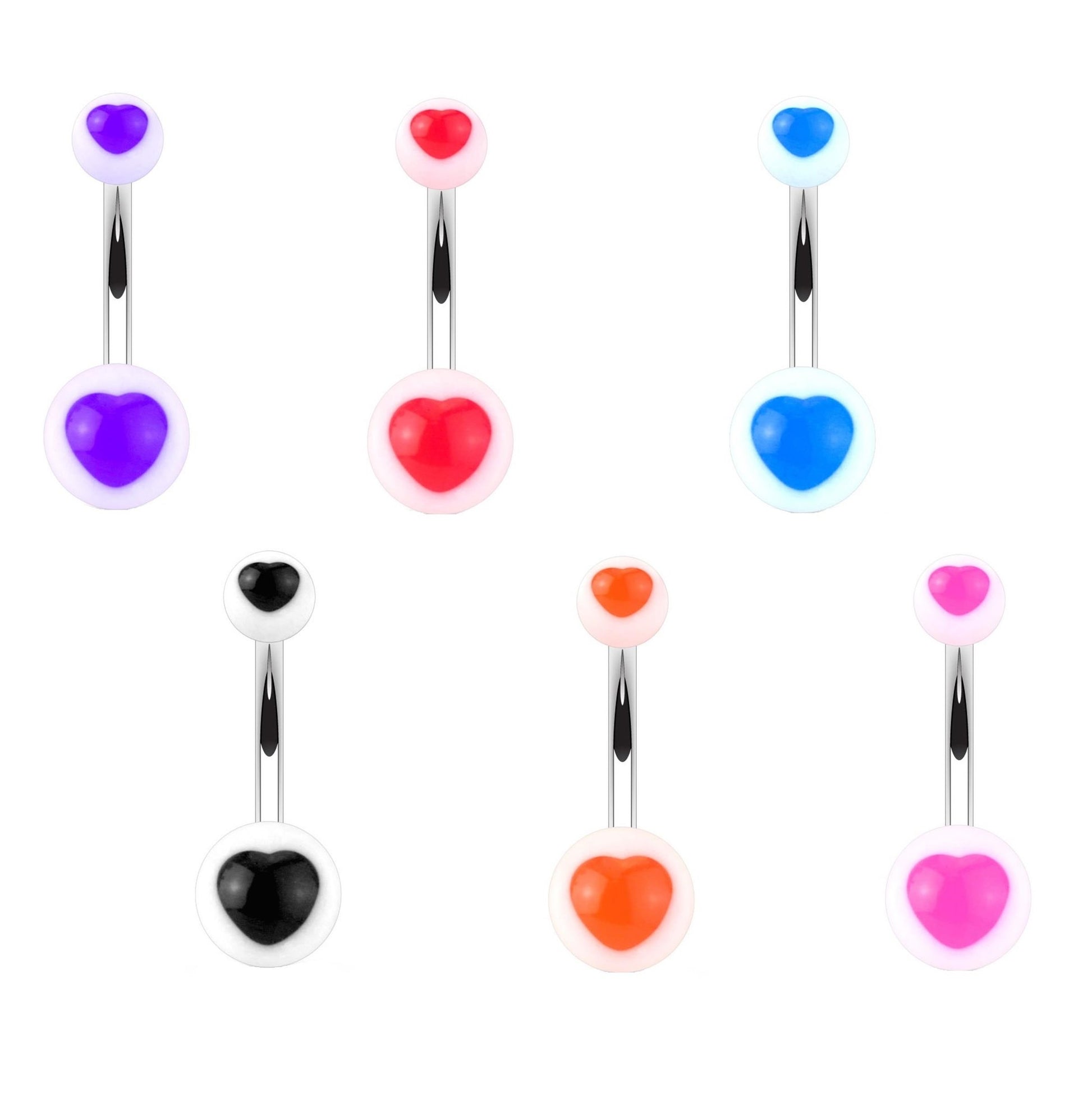 - Colored UV Heart Center Acrylic Balls 316L Surgical Steel Navel Ring