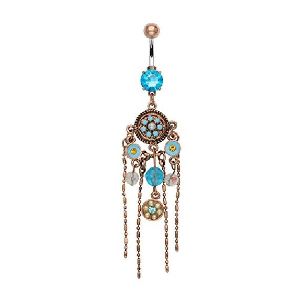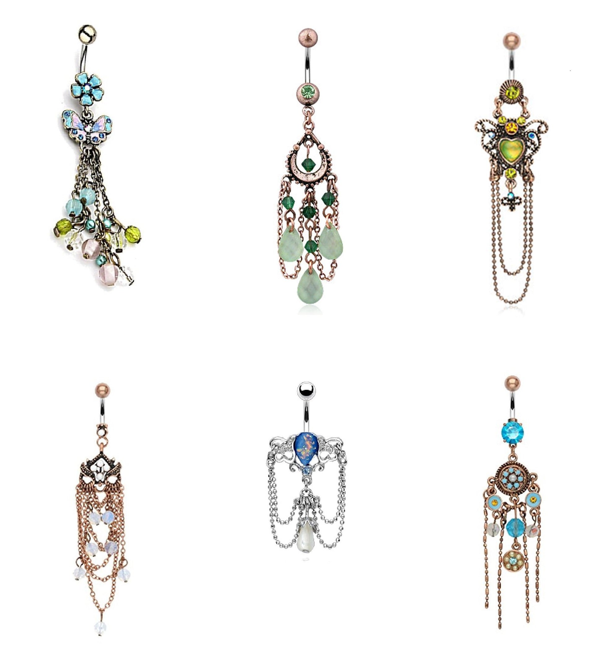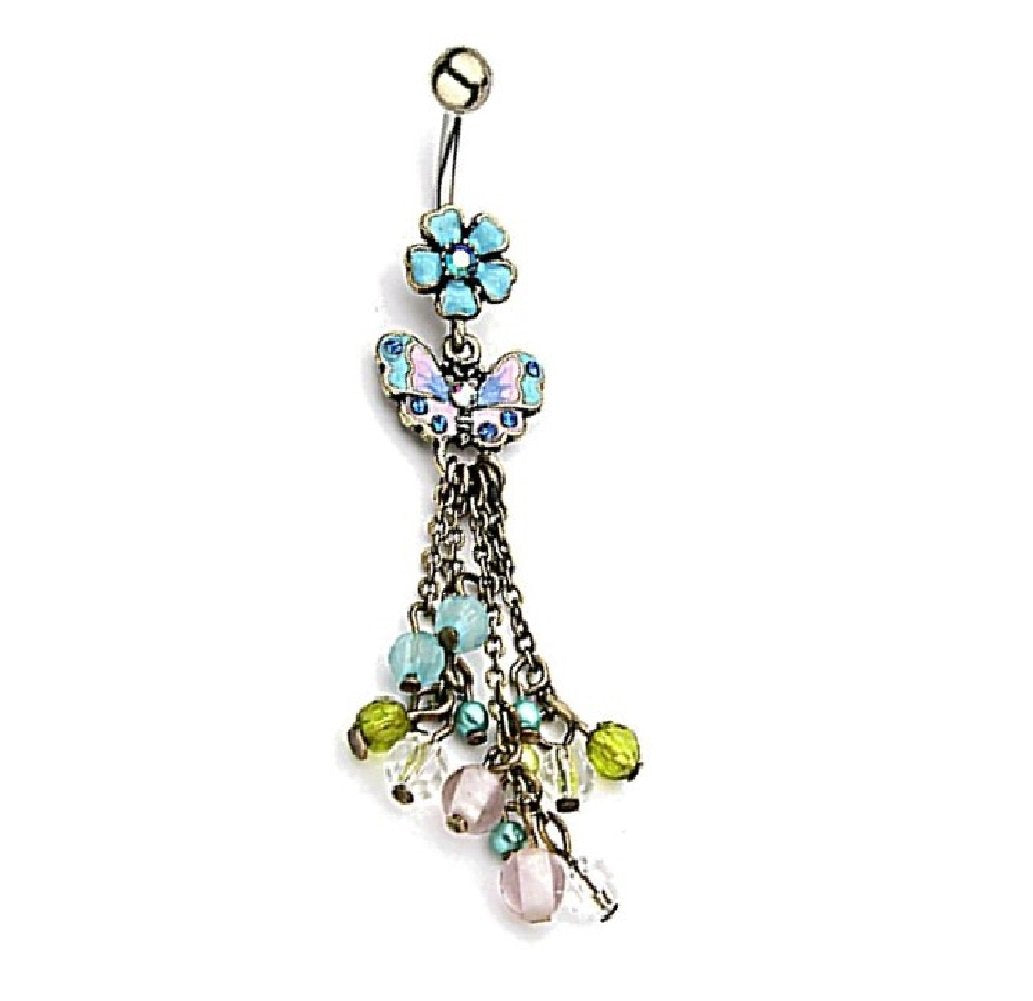 - Vintage Flower with Butterfly & Chain Drop Beads Dangle Belly Rings