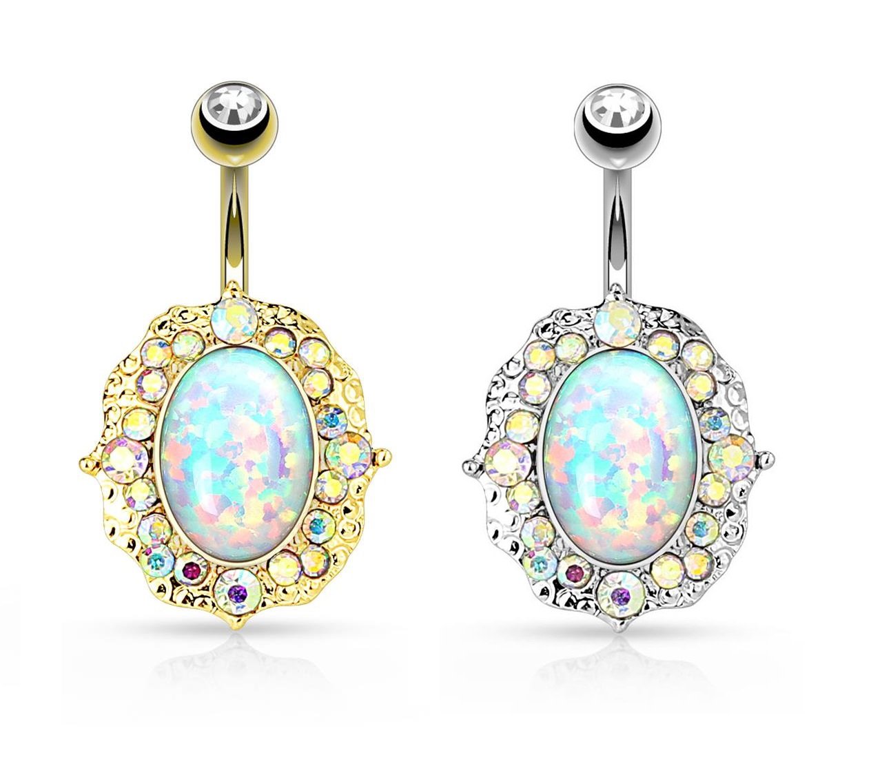 Bauchnabelpiercing Vintage Opal 1,6mm 10mm Nabelpiercing Chirurgenstahl Bananabell Zirkonia Silber Gold Aurora Borealis