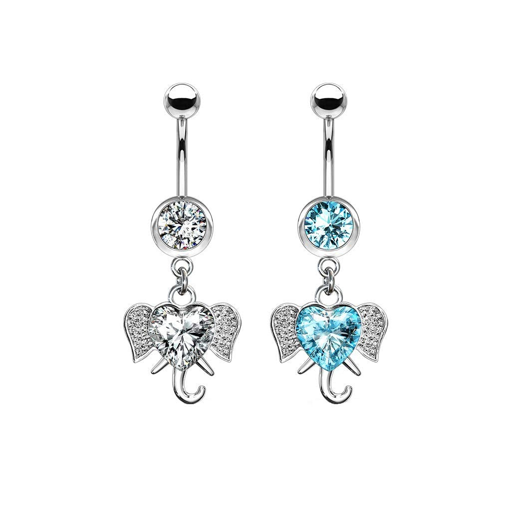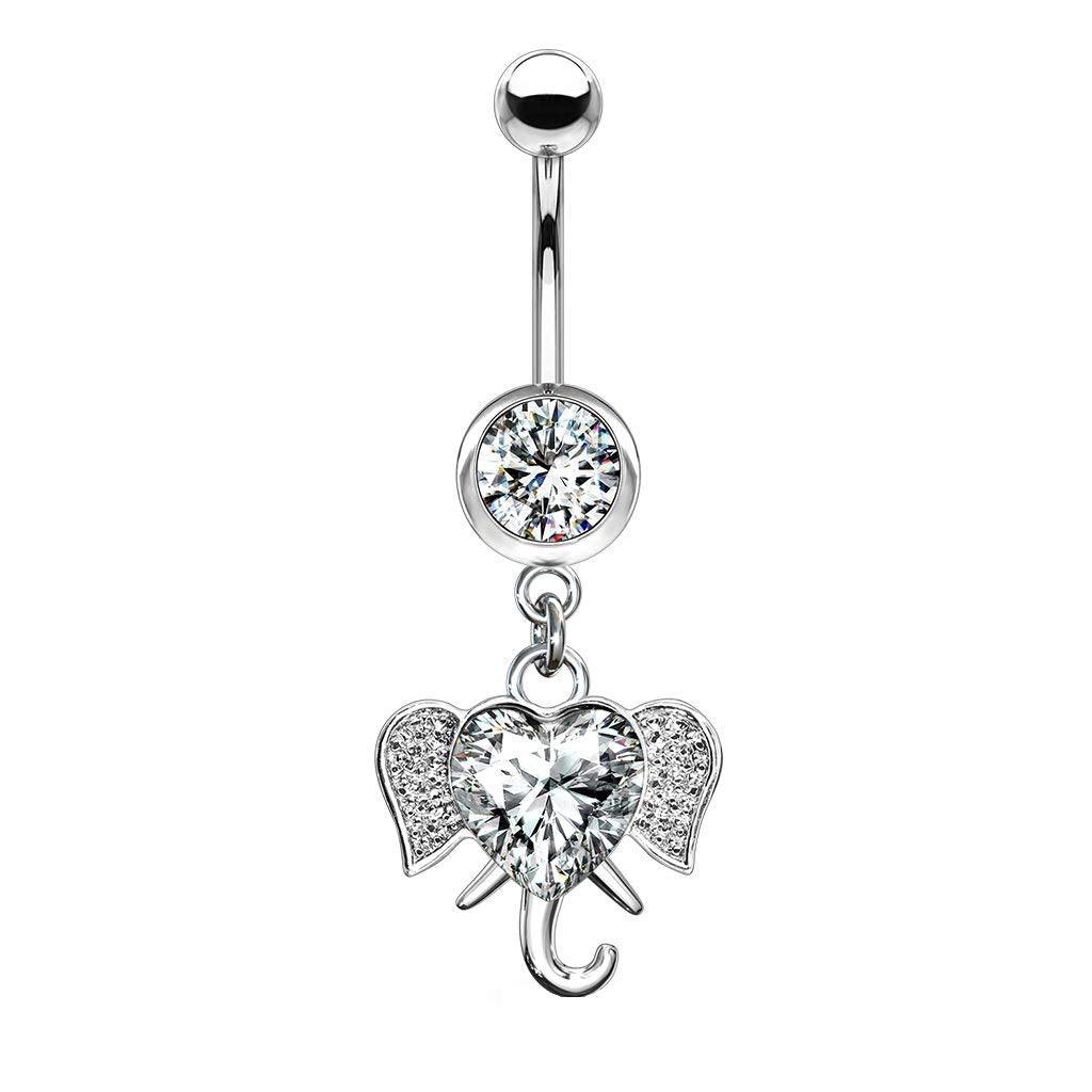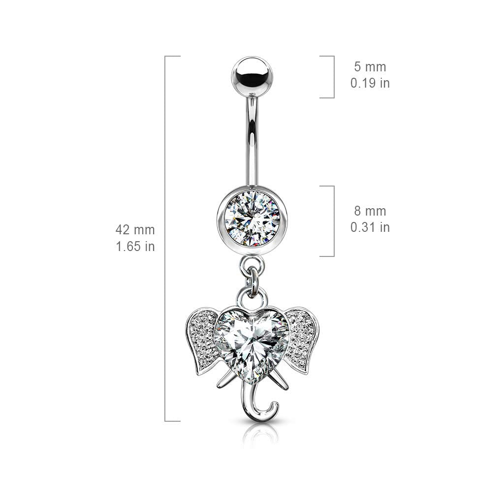 - Heart CZ Set Elephant Dangle 316L Surgical Steel Belly Button Navel Rings