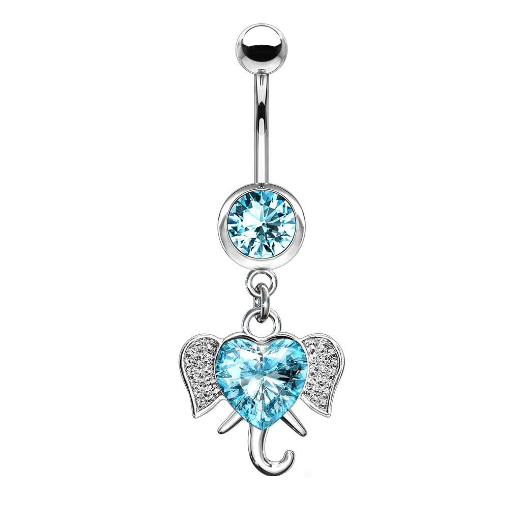 Bauchnabelpiercing Zirkonia Herz Elefant Anhänger Nabelpiercing Chirurgenstahl Bananabell Silber Clear Aqua Stab 1,6/10mm