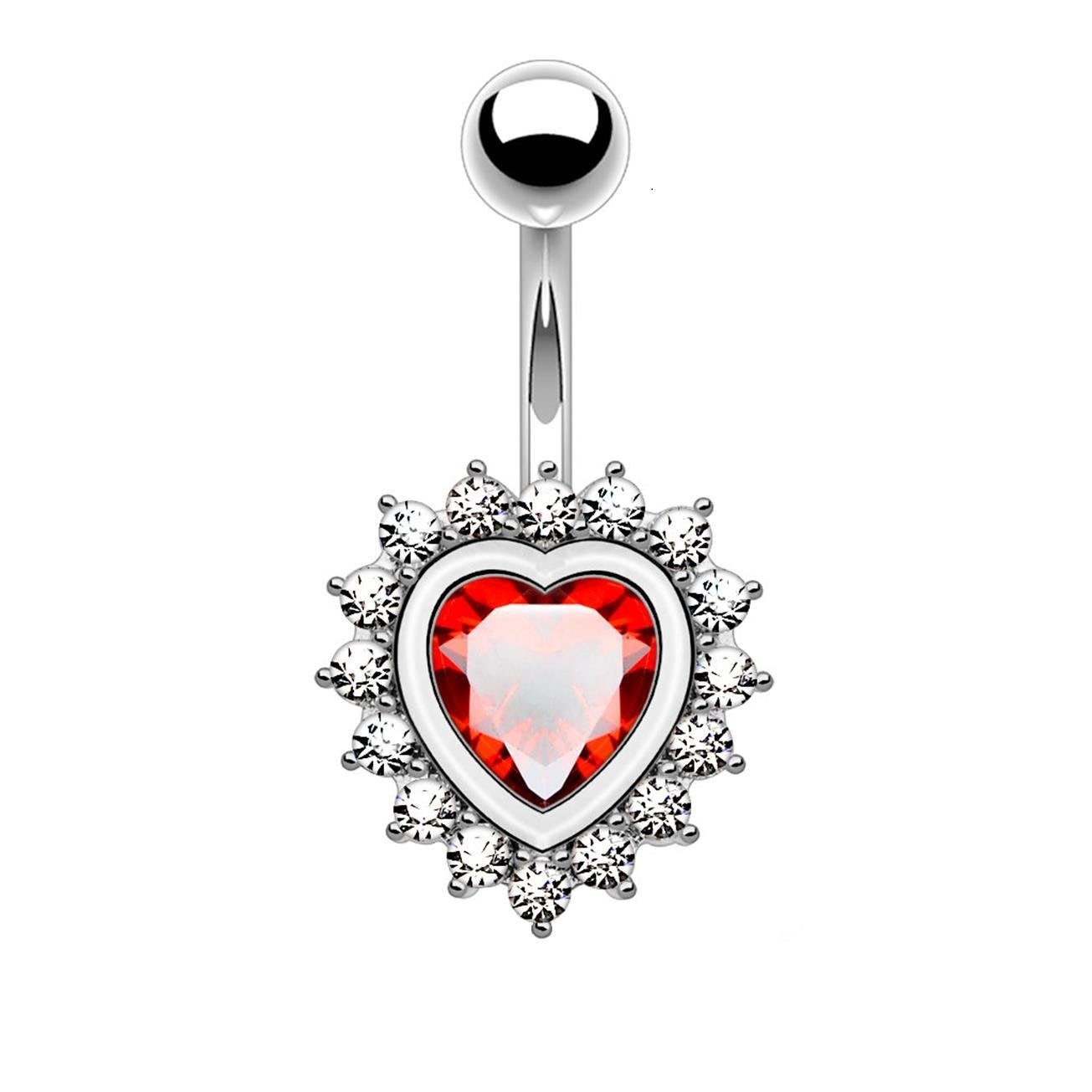 - Heart Shape Paved CZ Around Large Heart CZ Belly Button Rings