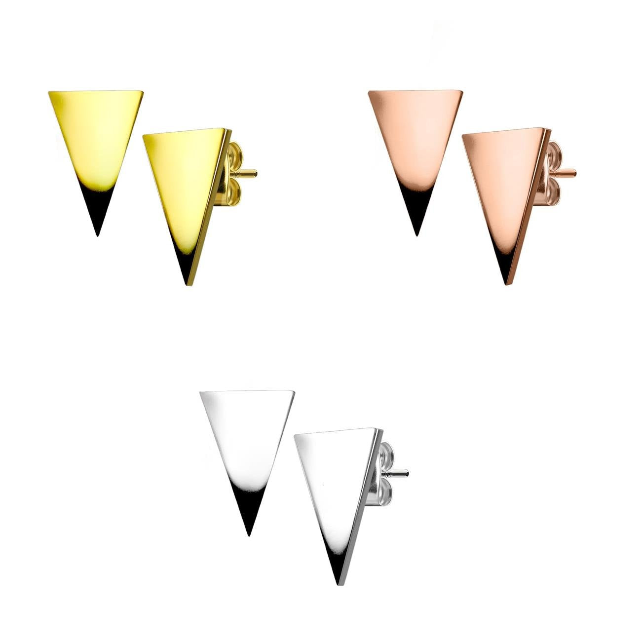 1 Paar funkelnde Ohrringe GROSSES DREIECK 7x11 mm 10x15 mm Ohrringe Ohrstecker Chirurgenstahl Set Silber Roségold Gold